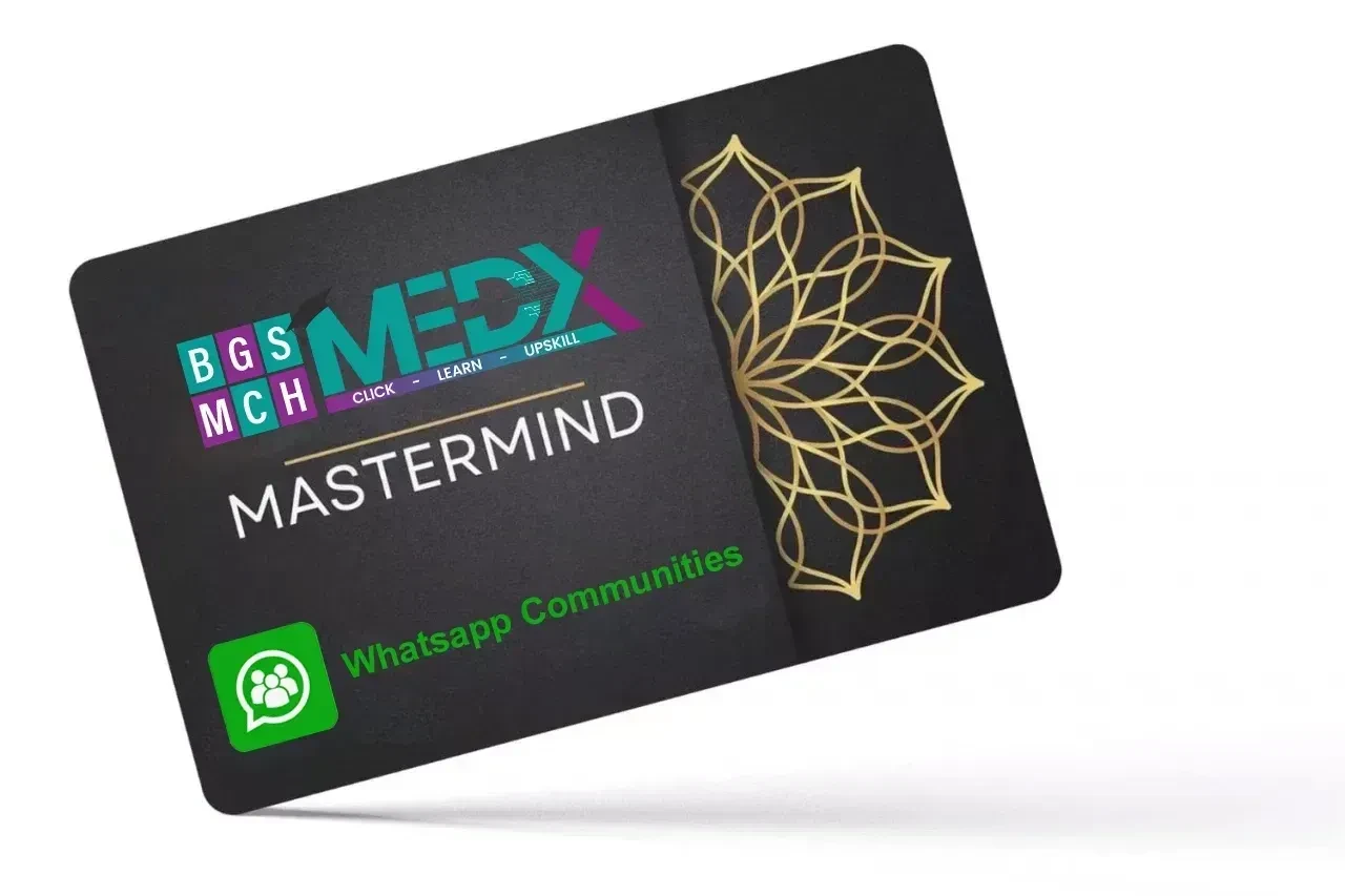 "Access our BGS MCH MedX Mastermind WhatsApp Group and Communities for valuable discussions, interactions, and contributions from our community members. Learn and engage with peers to enhance your knowledge."